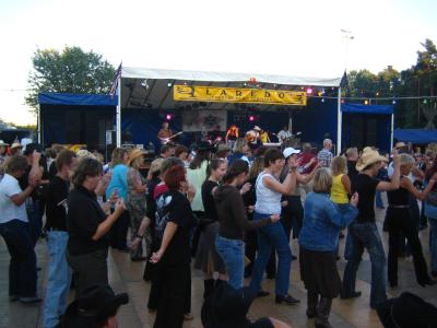Vor der Bühne war eine riesige Tanzfläche aufgebaut wo am Nachmittag ein Line Dance Kurs statt fand.